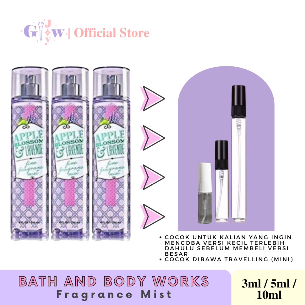 Perawatan & Kecantikan > Parfum & Wewangian > Parfum & Wewangian Unisex > [DECANT] BATH AND BODY WORKS - APPLE BLOSSOM & LAVENDER body fine fragrance mist | bbw badan tubuh murah wangi harum tahan seharian original asli bpom share in jar bottle botol mini travel size travelling