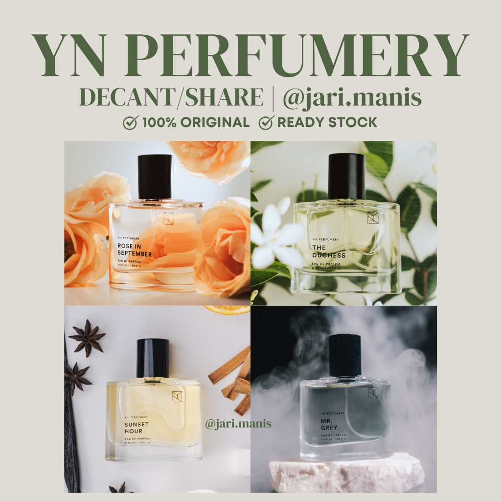 Video perkenalan produk decant share - YN Perfumery Garden of Spring Rose in September The Duchess Sunset Hour Mr Grey vial tester parfum. Sumber: Shopee.