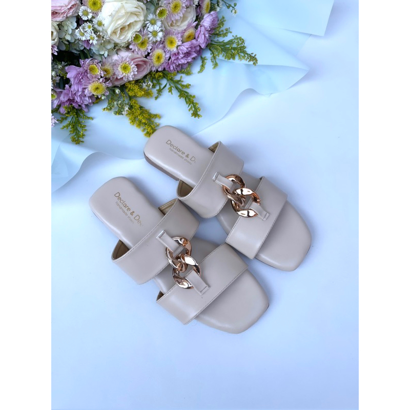 BRAND LOKAL (best quality) MODEL TWO STREAP HANDMADE BENTUK FLAT (lepes) NON SLIP SOLE MATERIAL KULIT SINTETIS PENGEMASAN PAKAI BOX (kotak) Berat + box 360 gram