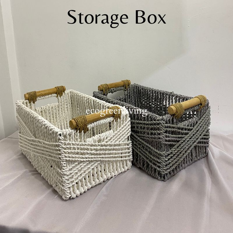 1 Keranjang Penyimpanan Tempat penyimpanan ini semua buatan tangan dengan tali kertas khusus. Setiap simpul membutuhkan waktu lama bagi pekerja kami untuk menganyam. Jadi ini adalah hadiah sempurna yang sepenuhnya buatan tangan.
