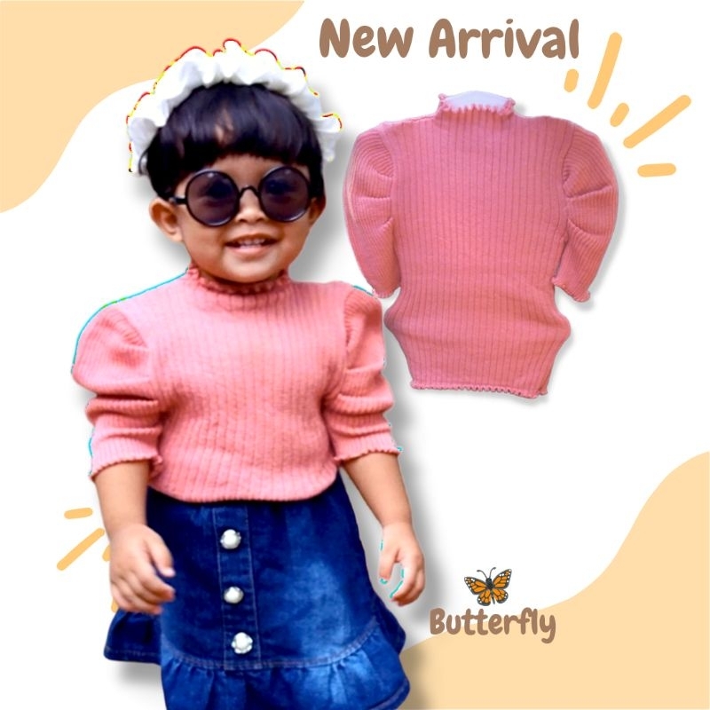 Fashion Bayi & Anak > Pakaian Anak Perempuan > Kaos > DECUTE Baju Rajut Anak Perempuan Gaya Korea Lengan Balon 1 2 3 thn Fhasion Anak Perempuan Terbaru Baju Lebaran Anak Terbaru 2023