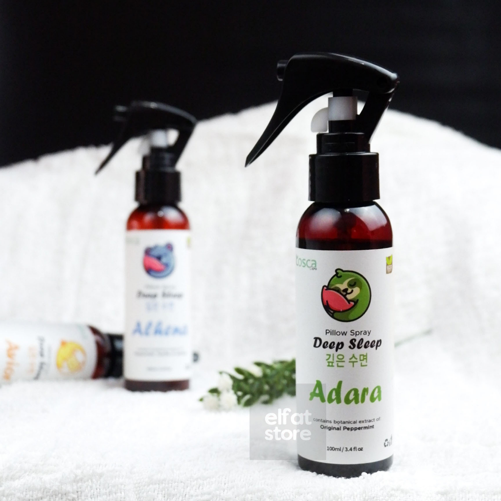 Aroma Deep Sleep Tosca yang tersedia: 1. Adara (Peppermint) dengan aroma mint yang mampu meredakan hidung tersumbat serta meringankan sakit kepala 2. Avior (Chamomile+Rose+YlangYlang) dengan aroma segar yang mampu menenangkan pikiran serta mengontrol emosi 3. Alhena (Vanilla+Peppermint+Jasmine) dengan aroma manis yang mampu merelaksasikan tubuh yang lelah