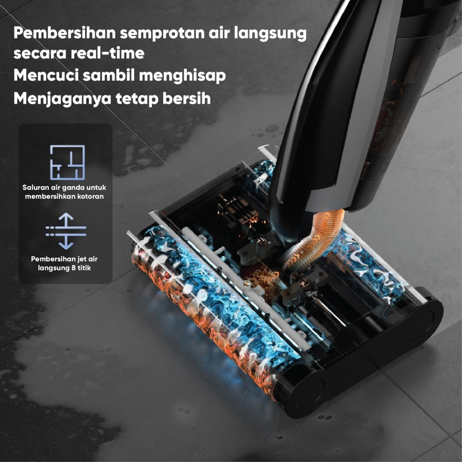 Fitur : - 14 strong performance, clean and powerful - 15kPa powerful open-stage motor suction, dry and wet garbage in one go - 360° front and back two-way washing, twice as clean and no dirt in the inner cavity - Newly added front and rear double saw-like comb teeth, which can be combed instantly and reduce entanglement - Newly created labor-saving shape, with its own traction, easy to push and pull - One-button self-cleaning, no need to dismantle and wash, no need to wash by hand - Spray with running water, wash while sucking, no secondary pollution