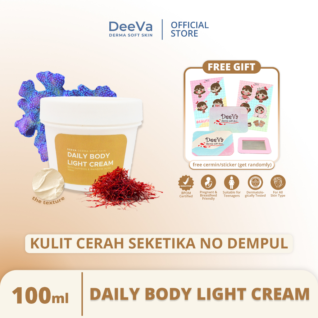 Perawatan & Kecantikan > Perawatan Tubuh > Body Cream, Body Lotion & Body Butter > DeeVa Derma Soft Skin - Daily Light Body Cream with Saffron and Rainbow Algae (krim tubuh mencerahkan dan memutihkan seketika)