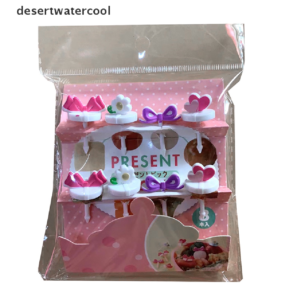 Deid 8pcs/set Lucu Kartun Busur Buah Garpu Anak Snack Dessert Picks Tookpick Martijn