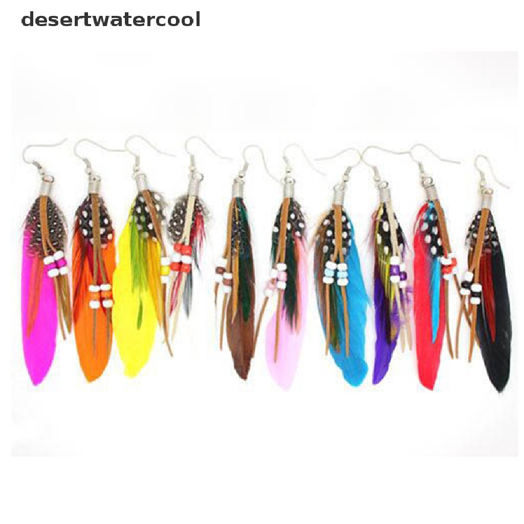 Detail Deid Fashion Rumbai Menjuntai Anting Bulu Kulit Beads Earrings Indian Feathers Martijn