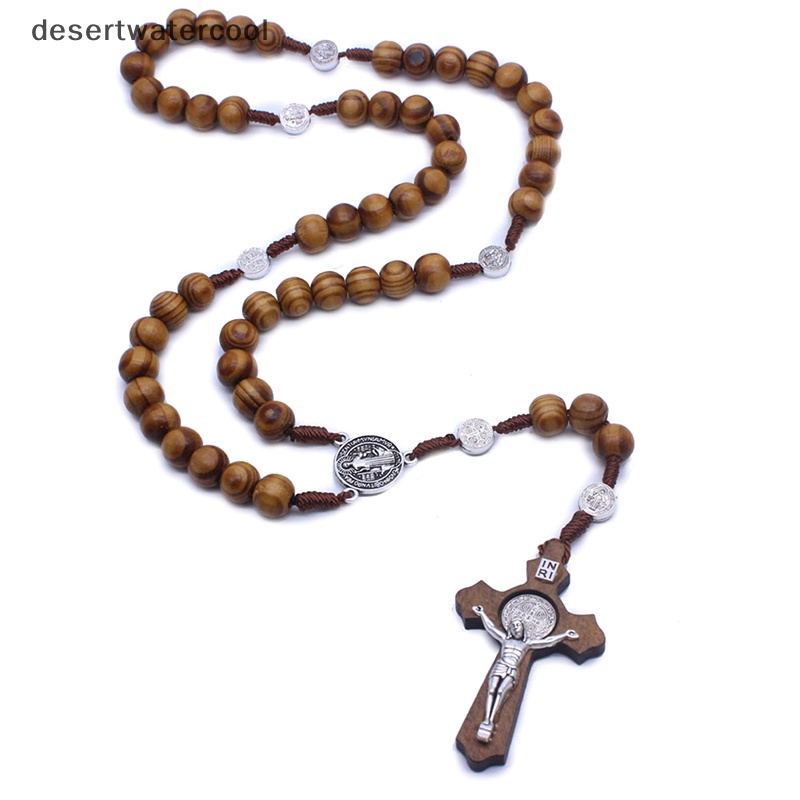 Fashion Buatan Tangan Bulat Kaca Manik Katolik Kualitas Rosario Manik-manik Cross Kalung Manik-manik Cross Religius Liontin Kalung