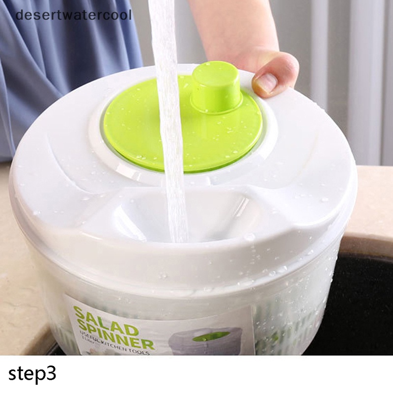 Keranjang pengeringan sayuran ini tahan lama, tidak berbau dan sehat untuk digunakan. Desain pemintalan khusus dapat dengan mudah menghilangkan air sayuran. Dirancang untuk mencuci, memutar dan mengeringkan salad, sayuran dan buah-buahan. Keranjang pengeringan sebagai saringan, menguras air; baskom luar berfungsi sebagai baskom cuci untuk membersihkan buah atau sayuran. Pemintal salad dapat dilepas untuk memudahkan pembersihan, desain yang lebih ramah pengguna.