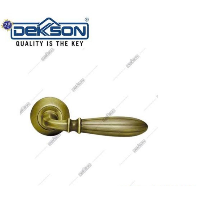 Deskripsi : Handle Pintu/ Gagang Pintu / Lever Handle Dekson / Dekkson Kegunaan : Biasa digunakan untuk pintu kayu Merk : Dekson / Dekkson Nomor Produk / Type : LHTR 81033 MAB Material : Zinc Finishing / Warna : MAB Satuan : 1 Pasang (2 pcs)