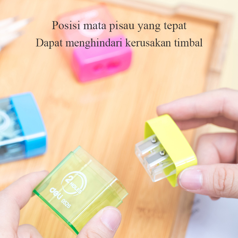 🧨Informasi produk Merek: Deli Nama Produk: Rautan Pensil Deli E0526 Negara asal: Tiongkok Ukuran Produk: 80 * 115 * 28 MM Berat produk: 17.700G Warna: biru, hijau dan merah muda Bahan: GPPS + Baja Ukuran & Spesifikasi: Dua lubang - untuk pensil standar φ 7 mm dan φ12 mm