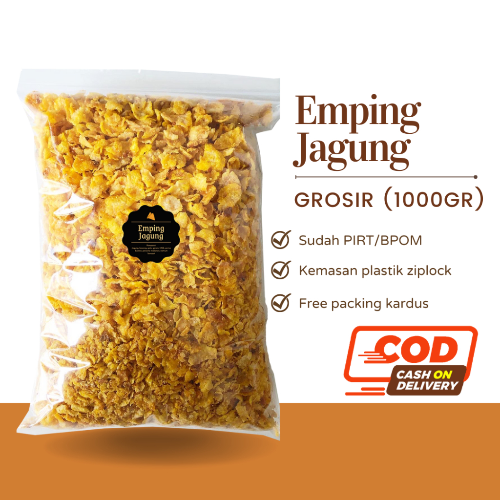 Kode: Emping Jagung Tersedia dalam ukuran grosir *Ukuran kemasan: 25x35cm *Berat bersih: 1000gr
