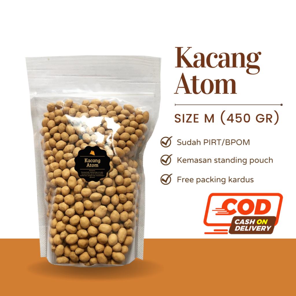 Kode: Kacang Atom Tersedia dalam 3 ukuran *Ukuran S: 12x20cm (200gr) *Ukuran M: 16x24cm (450gr) *Ukuran L: 20x29cm (1000gr)