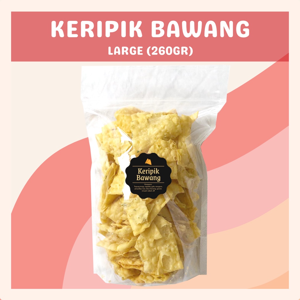 Kode: Keripik Bawang Tersedia dalam 3 ukuran *Ukuran S: 12x20cm (60gr) *Ukuran M: 16x24cm (140gr) *Ukuran L: 20x29cm (260gr)