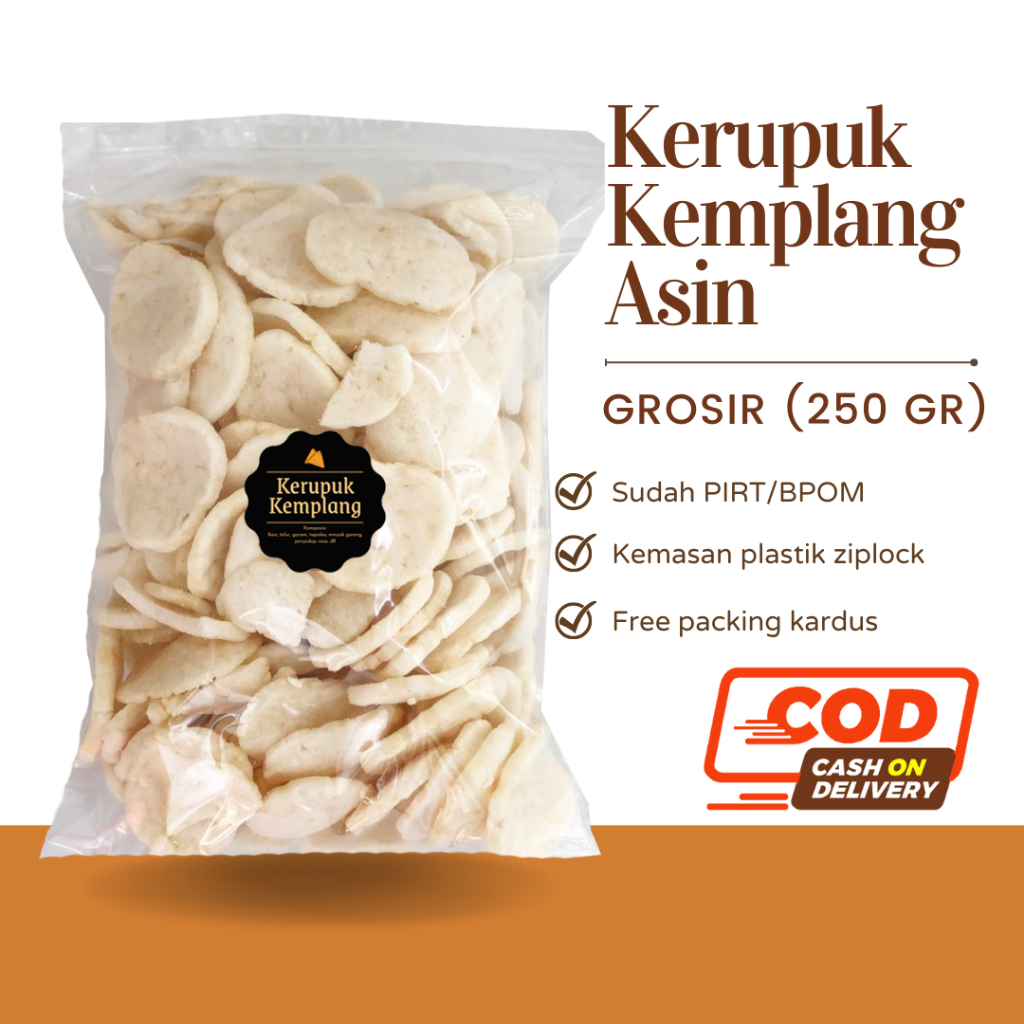Kode: Kerupuk Kemplang Palembang Asin Tersedia dalam ukuran grosir *Ukuran kemasan: 25x35cm *Berat bersih: 250gr