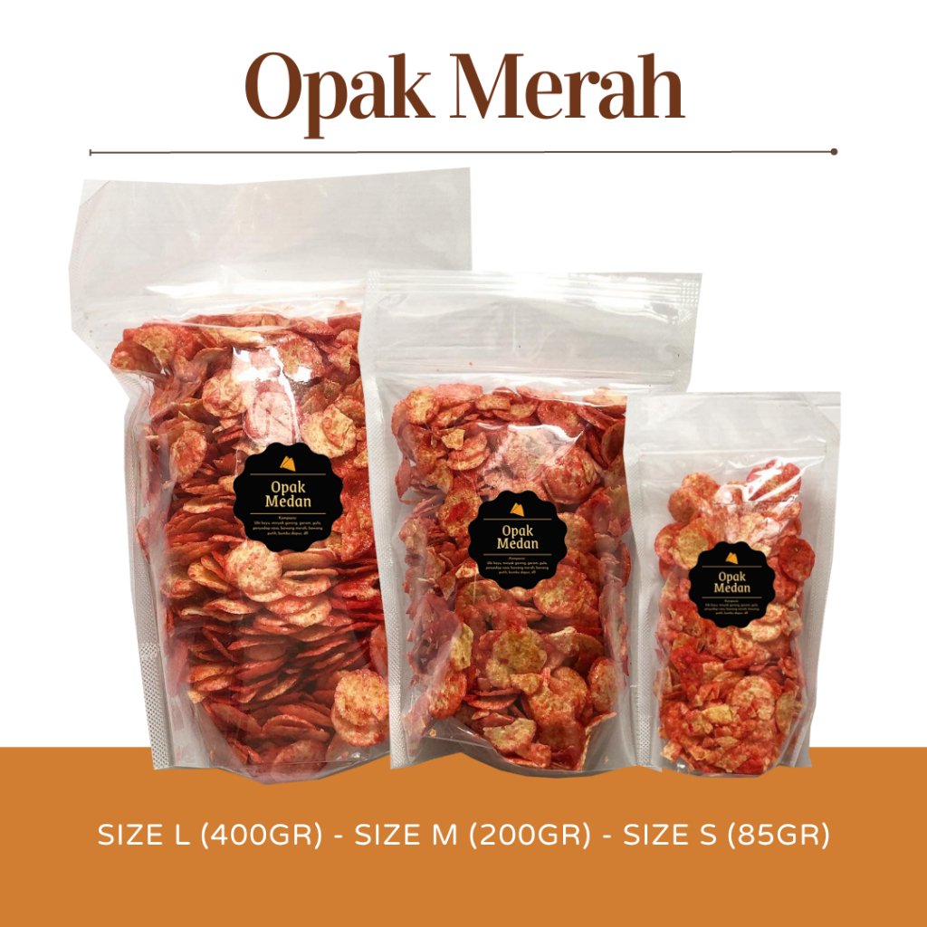 Kode: Opak Medan (Merah/Kuning) Tersedia dalam 3 ukuran *Ukuran S: 12x20cm (85gr) *Ukuran M: 16x24cm (200gr) *Ukuran L: 20x29cm (400gr)