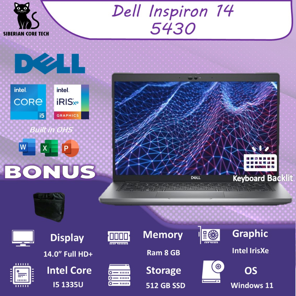 SPESIFIKASI : - Prosesor Intel® Core™ i5-1335U Processor (12MB Cache, up to 4.60 GHz) - RAM 8GB LPDDR5 - Storage 512GB SSD PCIe® NVMe™ M.2 SSD - VGA Intel® Iris® Xᵉ Graphics - Screen 14.0" FHD+ (1920 x 1200) Anti-G Non-Touch 250nits WVA Display with ComfortView Support - Windows 11 Home + Office Home Student