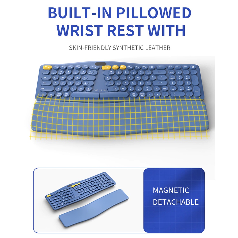 Package Included: 1 x DELUX GM903CV ergonomic keyboard 1 x Magnetic detachable wrist rest 1x 1.8m USB to Type-C cable 1 x User manual