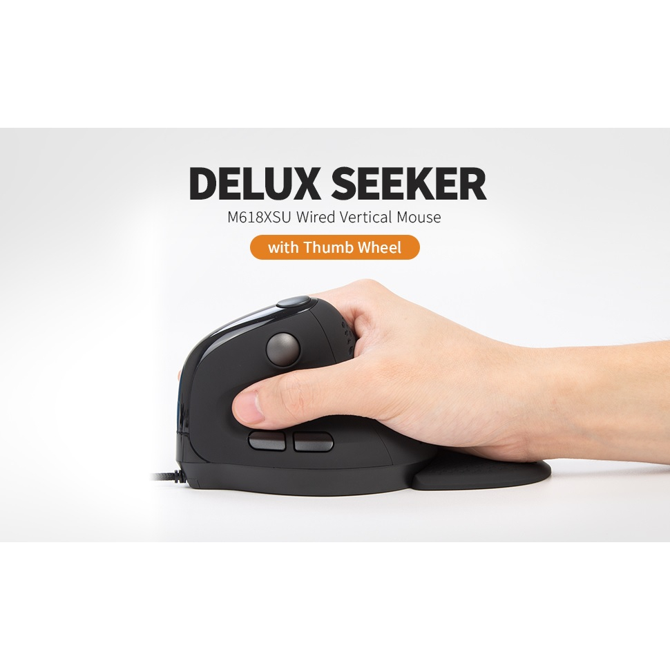 Specification Brand: DELUX Product Name: Ergo Vertical Mouse Product Model: M618XSU SEEKER Connection: Wired Keys: Left/Right Click, Scroll Wheel, Thumb Wheel, Forward/Backward and DPI Button DPI: 800/1200(default)/1600/2400/4000 Compatible System: Windows 7/8/10, Mac OS (software only for Windows)