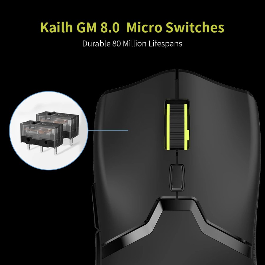 -[Komponen Lanjutan] Dirancang dengan sakelar mikro Kailh GM 8.0-tahan lama 80 juta rentang hidup; TTC wheel encoder-menawarkan umpan balik pengguliran yang cepat, tajam, dan konsisten; Kaki PTFE-untuk meluncur mulus dan konsisten; Pola samping anti-selip-untuk genggaman yang nyaman
