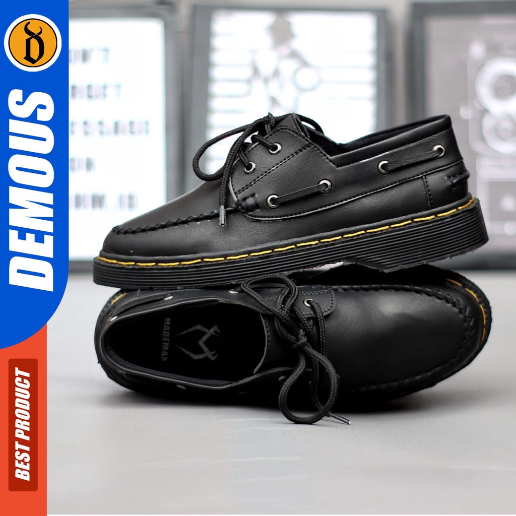 Detail DEMOUS Fushi - Sepatu Docmart Formal Casual Boots Pantofel Kerja Pria Hitam