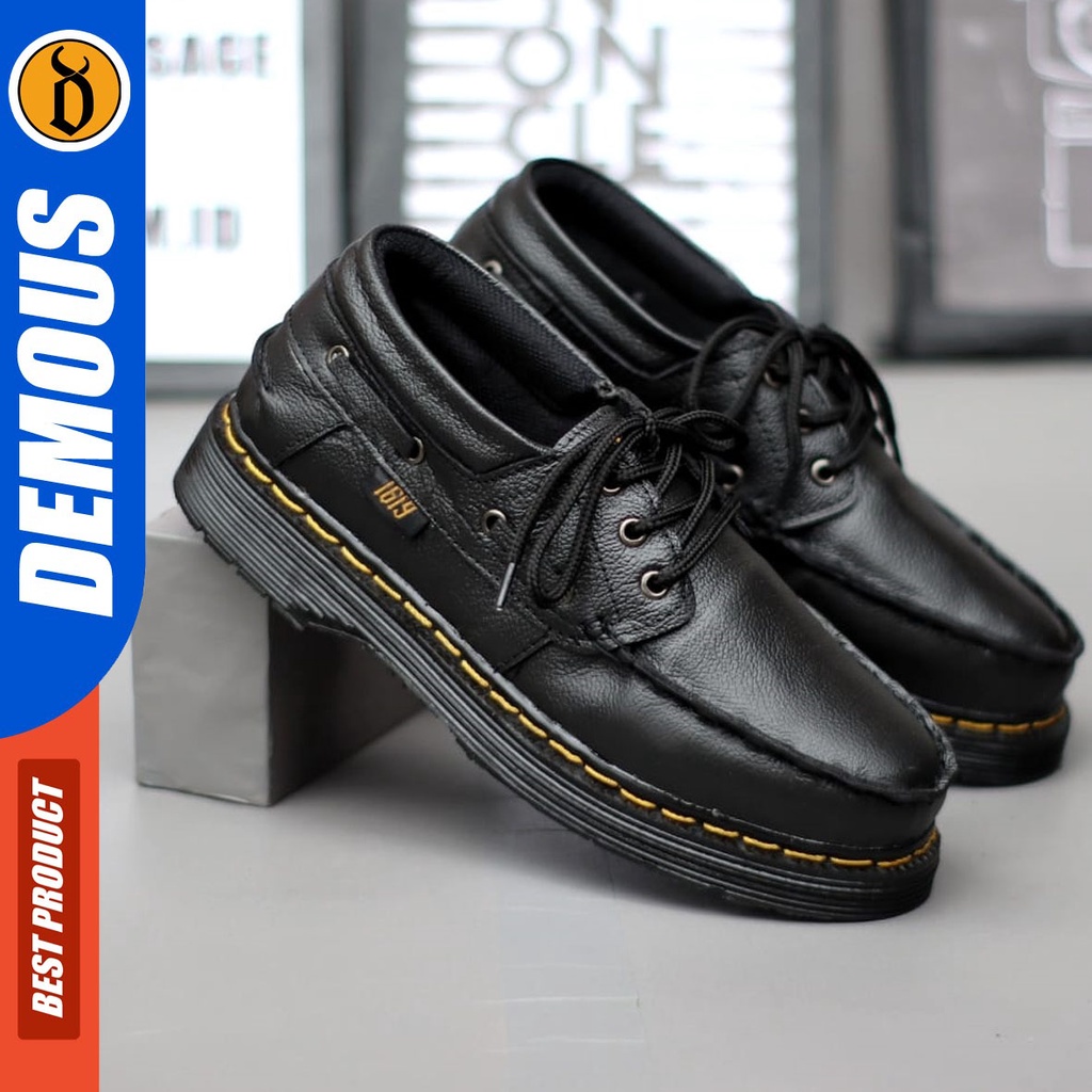 Detail DEMOUS Gond - Sepatu Docmart Formal Pantofel Low Boots Kulit Asli Kerja Hitam Pria