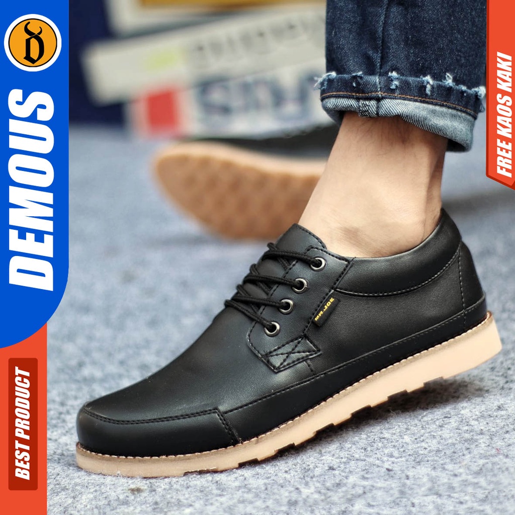 Detail DEMOUS Sepatu Kasual Pria Formal Kulit Pu Kerja Kantor Hitam