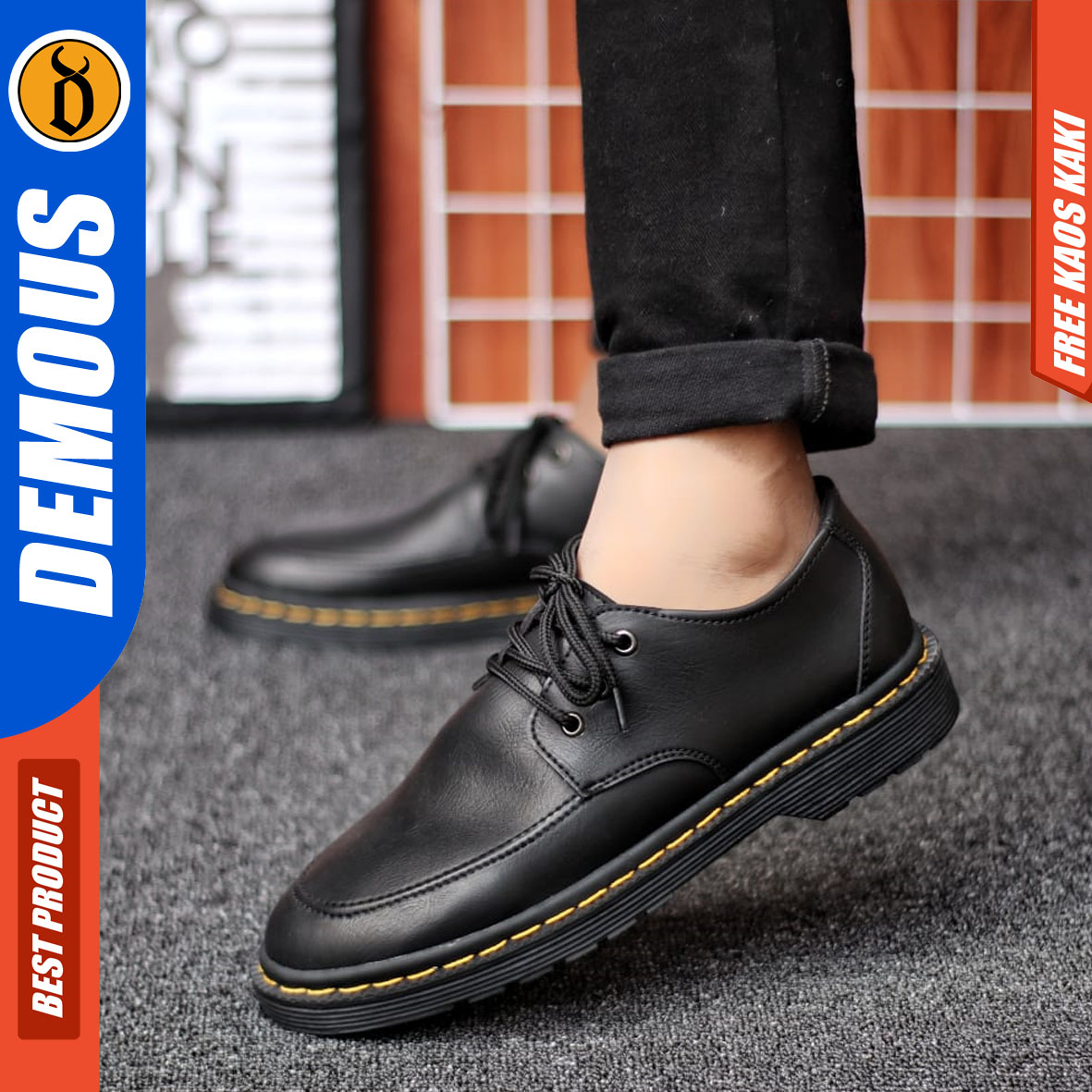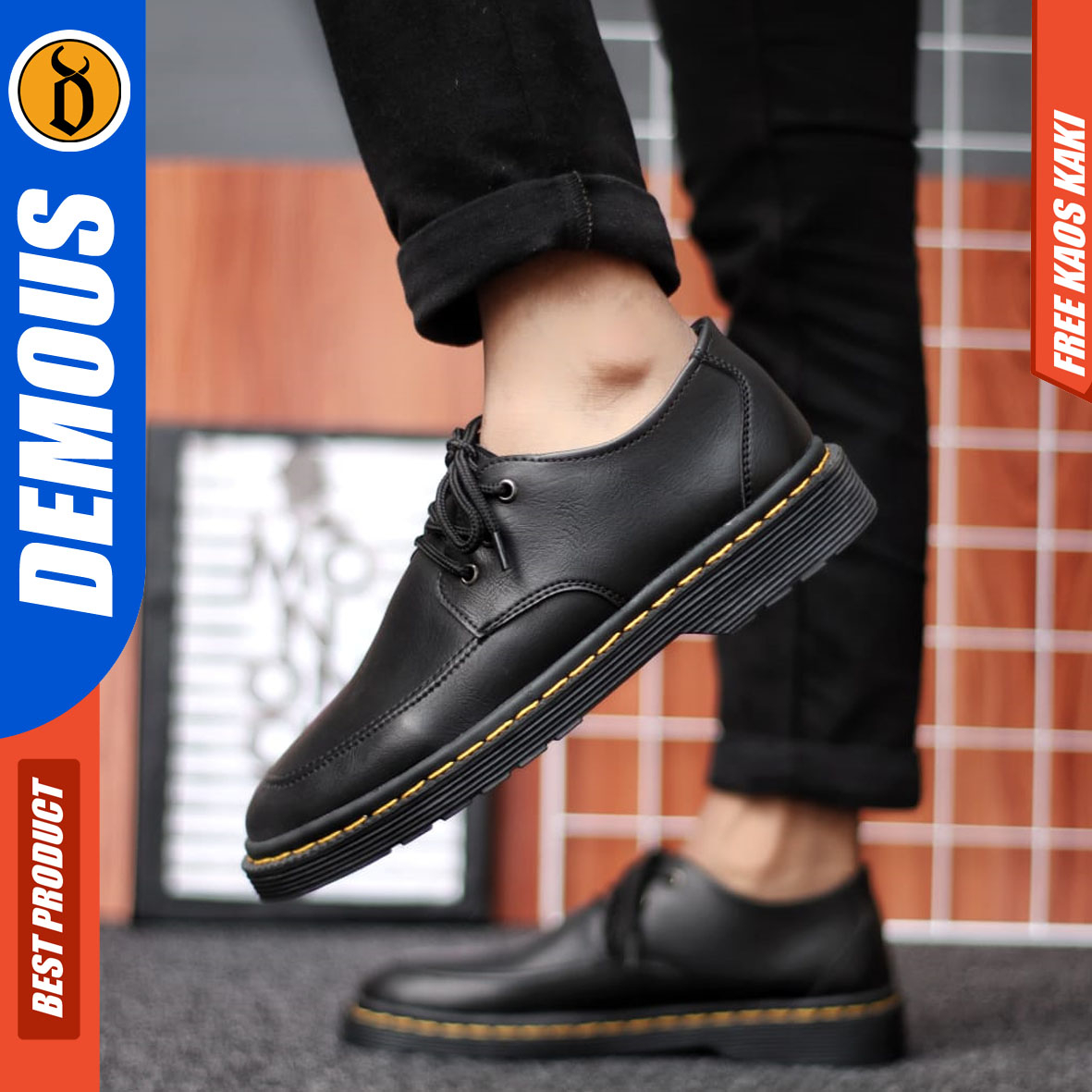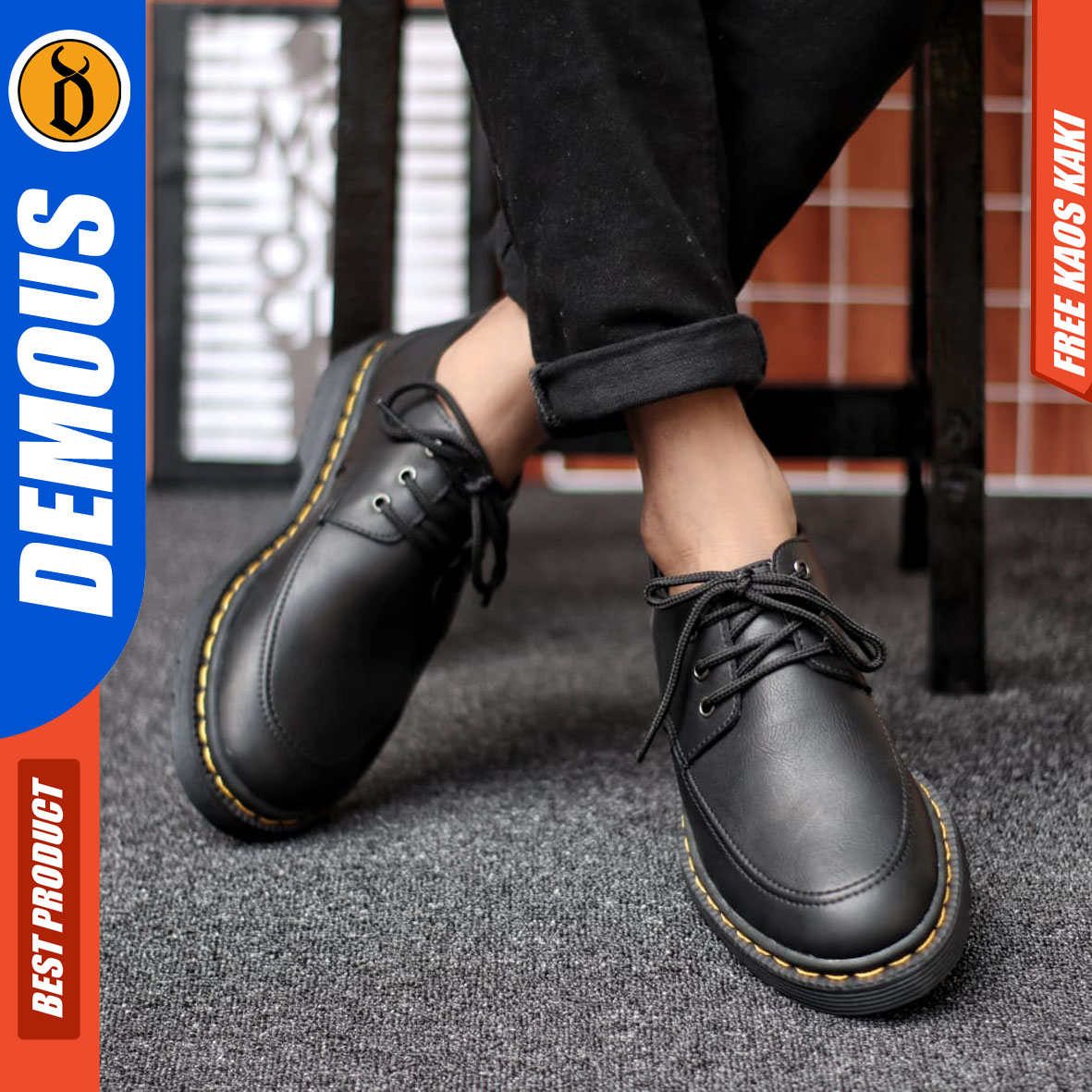 Detail DEMOUS SMITH - Sepatu Docmart Pria Low Boots Hitam Kulit PU