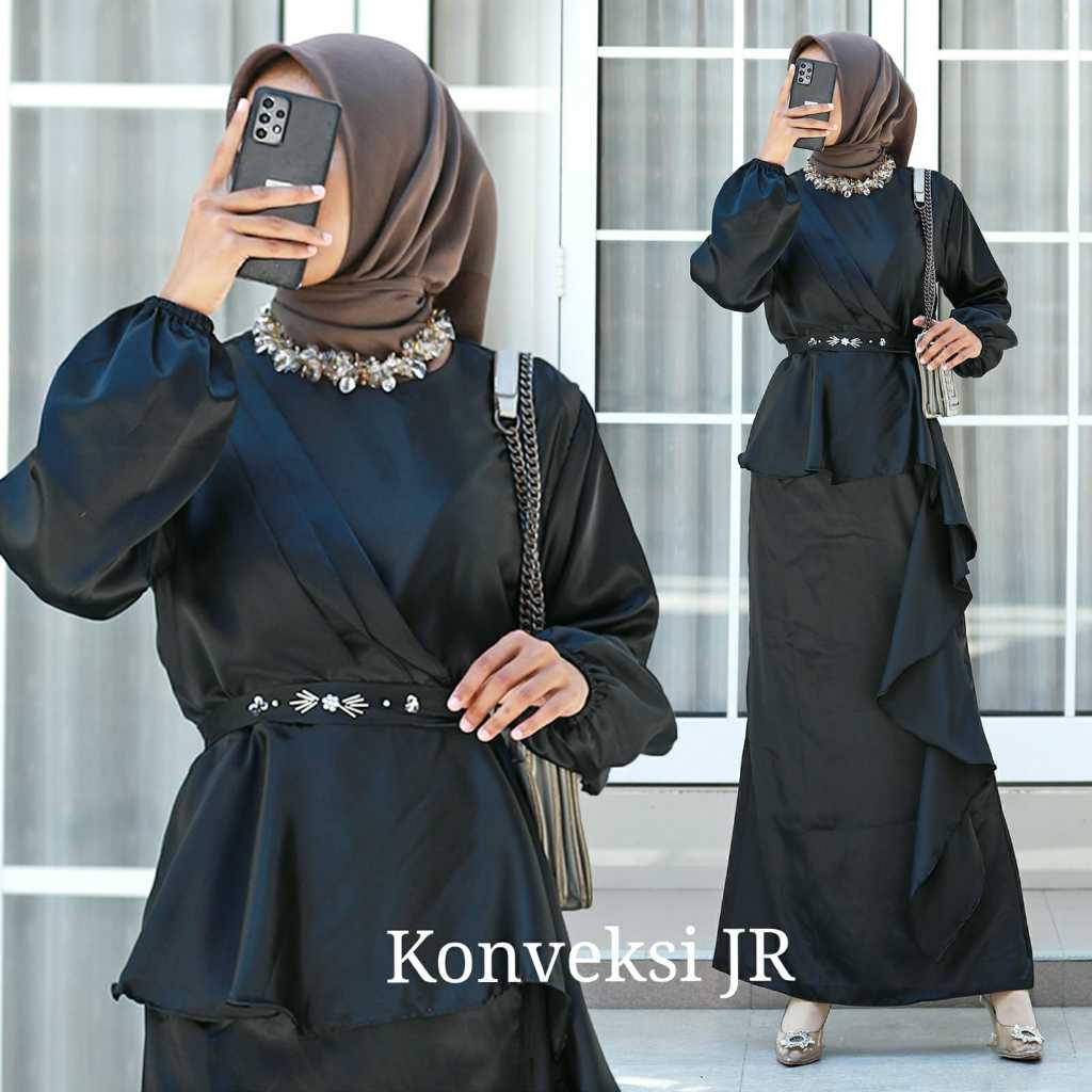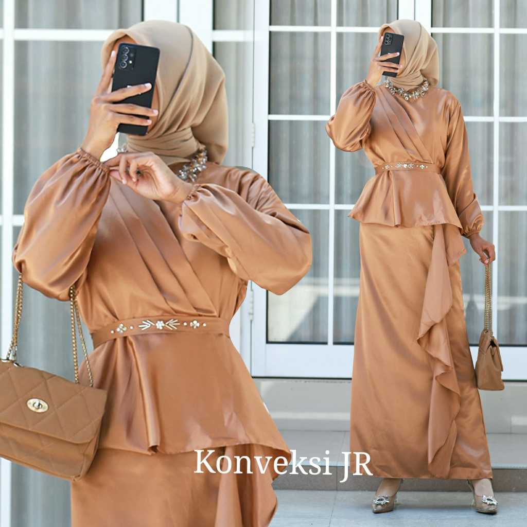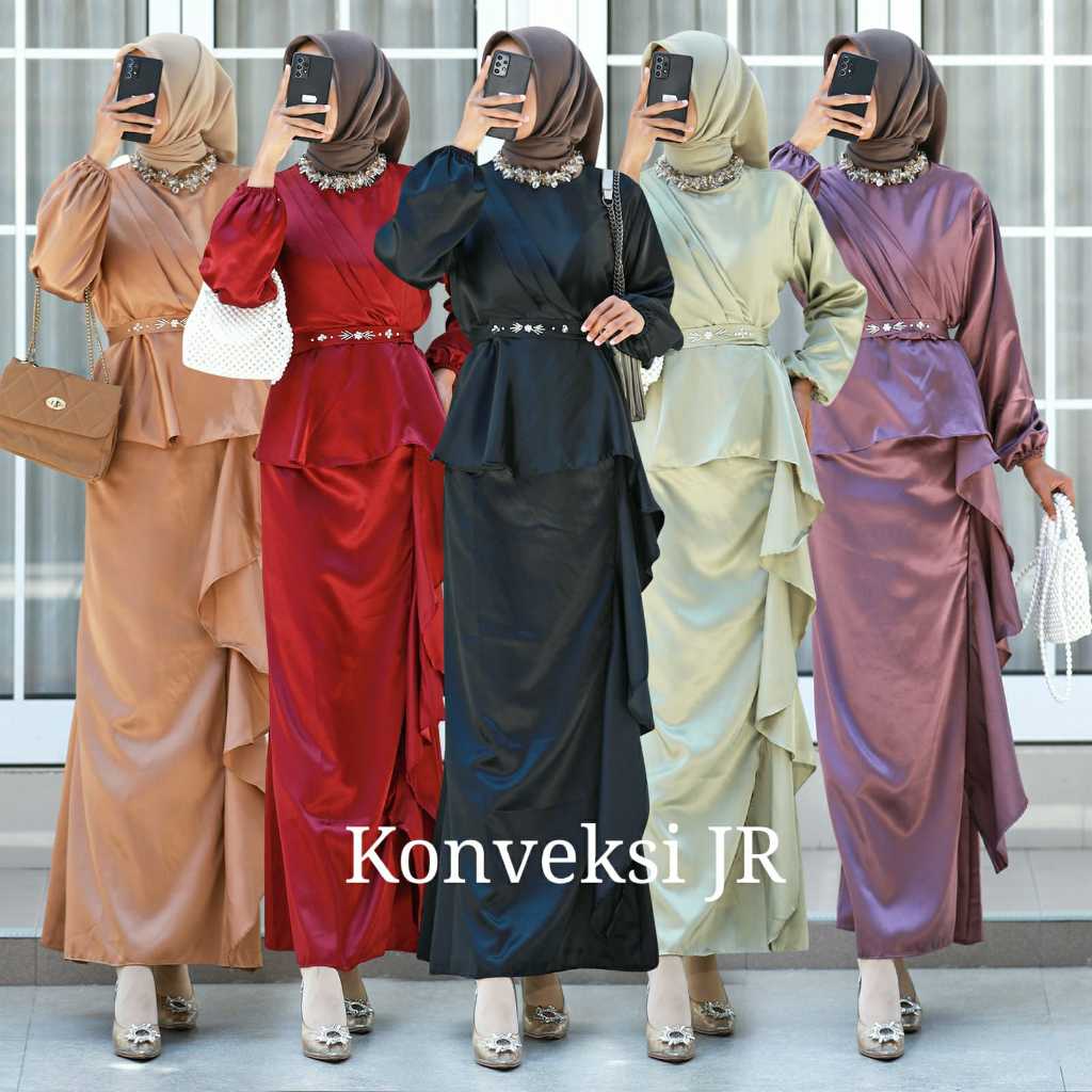 Bahan Satin Silk Ukuran Allsize Ld 100 cm Pj -+140 Cm Pj Ketiak 47 Cm L Pinggul -+110 cm L Pinggang 88 Cm Muat Bb Maksimal 62 Kg Terdapat Aksen Dibagian Dada Dan Rok Terdapat Resleting Di Bagian Belakang