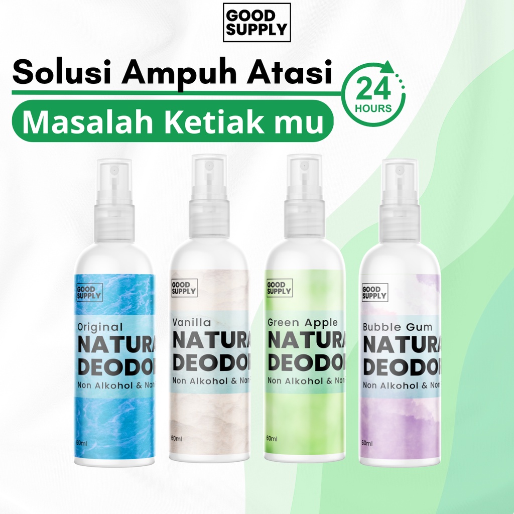 Natural Deodorant By Good Supply Berbahan Alami Serta Wangi Nya Menggunakan Essential Oil, Tanpa Ada Kandungan Kimia Parfum Dan Alkohol. Deodorant Ini Juga Aman Bila Dipakai Ibu Hamil, Ibu Menyusui,Dan Anak Anak. . Deodorant Ini Mengandung Essential Oil, Aman Dan Banyak Manfaat Untuk Kulit Salah Satunya Melembutkan Ketiak,Menyembuhkan Luka Kecil/Ringan Dan Tidak Membuat Ketiak Iritasi. . Dan Deodorant Ini Mengandung Air Destilasi/ Air Suling Atau Aquadest, Agar Mudah Menyerap Di Kulit Ketiak Dan Tidak Membuat Kulit Luka Atau Iritasi. Potassium Alum Atau Biasa Disebut Tawas Yang Baik Untuk Kesehatan Ketiak, Mencegah/Mengontrol Minyak Berlebih, Dan Dalam Kehidupan Bahan Ini Tidak Mencemari Lingkungan. . Manfaat Natural Deo : - Menghilangkan Bau Badan - Mencegah Keringat Berlebih - Mencerahkan Ketiak - Tidak Meninggalkan Bekas Di Baju - Kering Dan Tidak Lengket - Non Alkohol & Non Parfume - Aman Untuk Bumil & Busui - Daya Tahan 24 Jam . Cara Pakai : - Kocok Terlebih Dahulu Sebelum Pemakaian - Aplikasikan Pada Ketiak Setelah Mandi Dan Semprot 2-3 Kali - Selamat Beraktifitas Tanpa Takut Bau Keti Mengganggu . Garansi 100% Uang Kembali ! Jika Produk Tidak Sesuai Gambar Dan Deskripsi Jika Produk Rusak Saat Diterima Jika Produk Tidak Berfungsi Sebagaimana Mestinya Mohon Chat Admin Sebelum Penilaian, Terimakasih