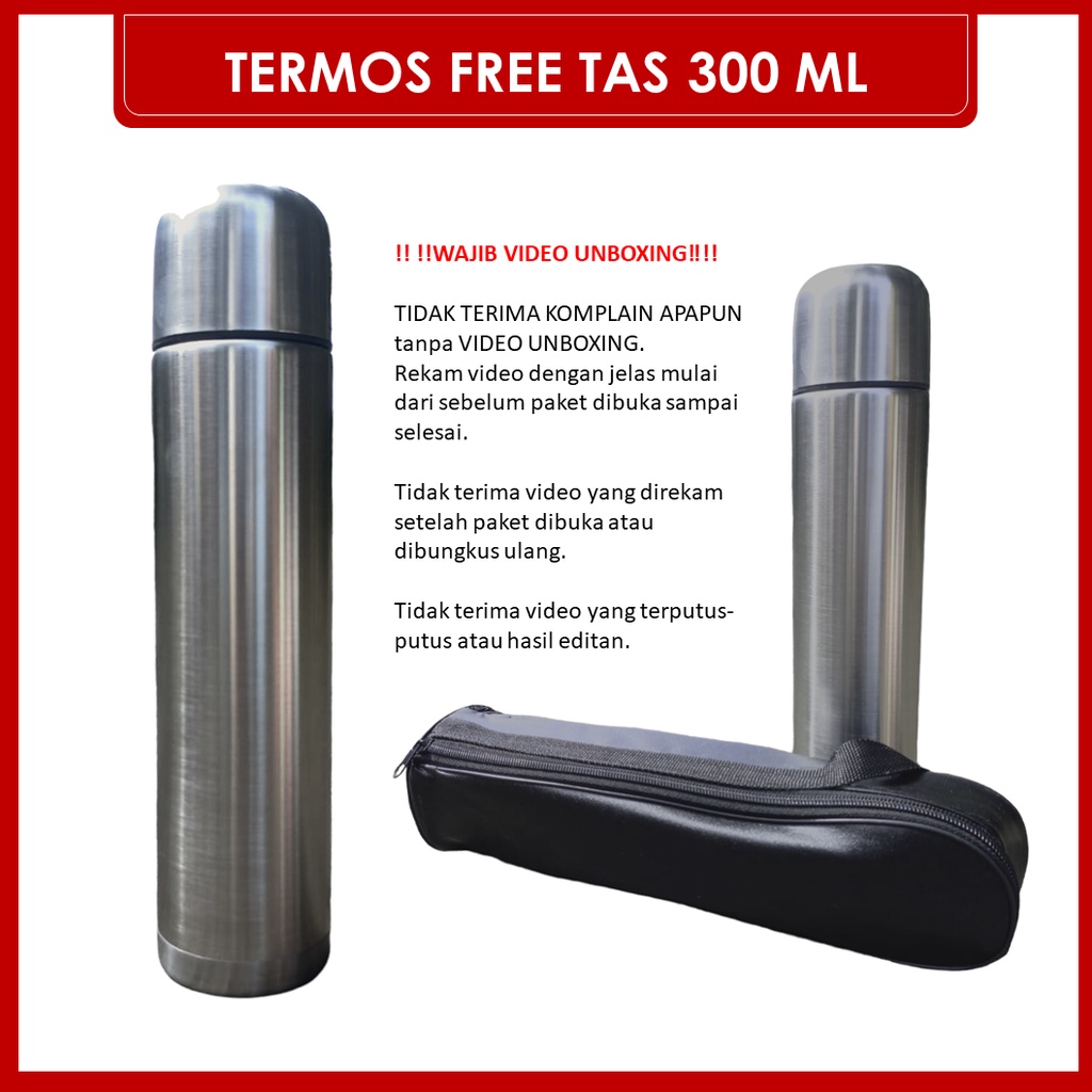 DEOSOFFICIAL -- TERMOS HIGH GRADE FREE TAS/TERMOS AIR PANAS VACUUM FLASK AIR BOTOL 18/8 STAINLESS STEEL 300ML