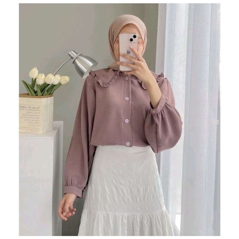 Detail DERA BLOUSE CRINCLE /Atasan Kemeja Polos Bahan Crincle Termurah Terbaru
