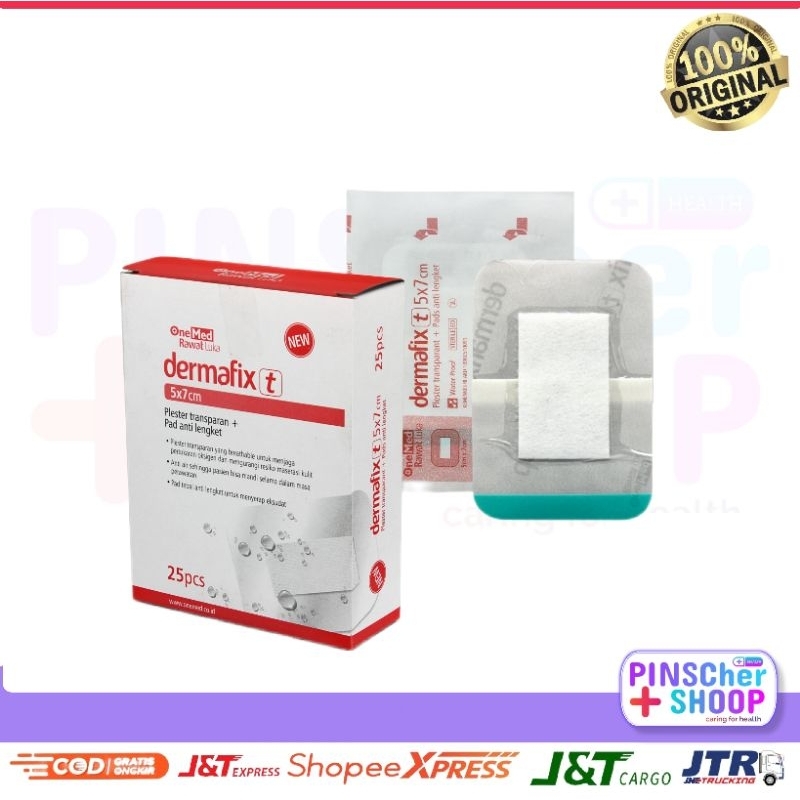 Spesifikasi : - Kemenkes RI AKL 10902013525 - Nama : dermafix T 10x25 cm - Ukuran : 5x7 cm - Merek : Onemed Kemasan Box isi 25 Pcs dan 50 pcs