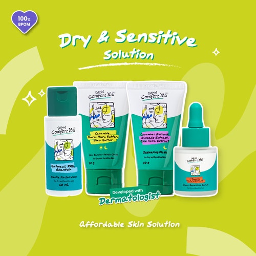 Comfort You Gentle Facial Wash - Sabun pembersih wajah dengan kandungan Oatmeal, PHA, dan Allantoin, untuk mengangkat kotoran dan sel-sel kulit mati dengan lembut, serta melembapkan kulit wajah. Diformulasikan pada pH Balance, tanpa mengandung SLS/SLES, paraben, pewangi, dan pewarna buatan, serta dapat digunakan untuk ibu hamil (pregnancy-friendly)
