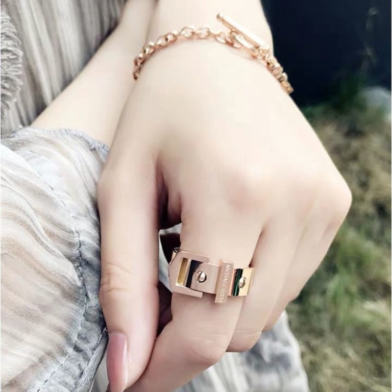 Detail Desain High-end Merasakan Emas 18 K Cincin Baja Titanium Perempuan Sederhana Indah Modis Cincin Anti Karat