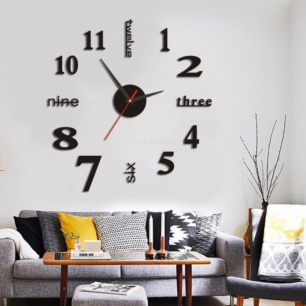 Perlengkapan Rumah > Dekorasi > Jam Dinding > Desain Modern Jam Senyap Bercahaya Besar Jam Dinding 3D DIY Acrylic Mechanism Stiker Rumah Ruang Tamu Dekorasi Jarum Kuarsa