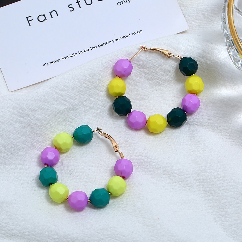 Aksesoris Fashion > Anting > Desain Orang Banyak Kecil Berlebihan Warna Permen Permata Potong Anting-Anting Warna Kontras Manik-Manik Anting-Anting Ins Gaya Anting-Anting