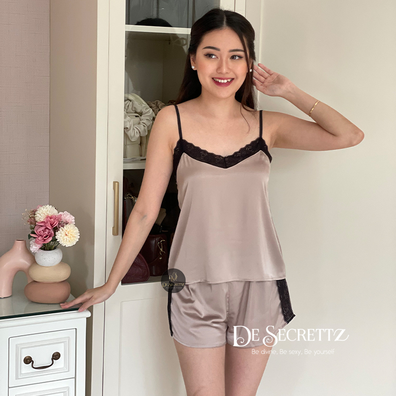 Pakaian Wanita > Pakaian Tidur & Piyama > Piyama > DeSecrettz YVES Baju Tidur Wanita Dewasa Model Setelan Wanita One Set, Bisa Untuk Piyama Wanita Kekinian, Bahan Satin