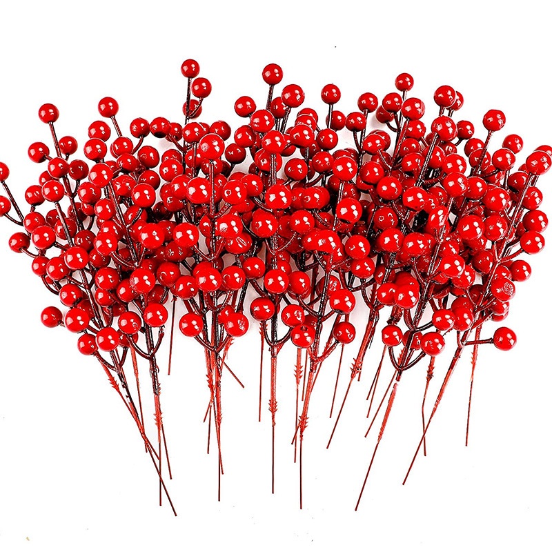 Souvenir & Party Supplies > Perlengkapan Pesta > Perlengkapan Pesta Lainnya > Desktop Decorative Flowers Christmas New Year Decoration Accessories Artificial 12-headed Red Berry DIY Garland Berry Arrangement Christmas Tree Red Berry Decoration 5Pcs