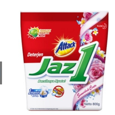 Rawat pakaian Anda dengan selalu mencucinya menggunakan rangkaian produk deterjen Attack. Deterjen berkualitas yang ramah lingkungan persembahan dari Kao ini dirancang untuk mencuci dan merawat pakaian secara menyeluruh. Kini hadir Attack Jaz1 Semerbak Cinta yang merupakan deterjen dengan "Jurus Perontok Super" yang dapat meluruhkan kotoran sejak pakaian direndam tanpa perlu tambahan sabun colek. Cukup dengan 5 menit perendaman baju akan bersih dengan aroma semerbak bunga.