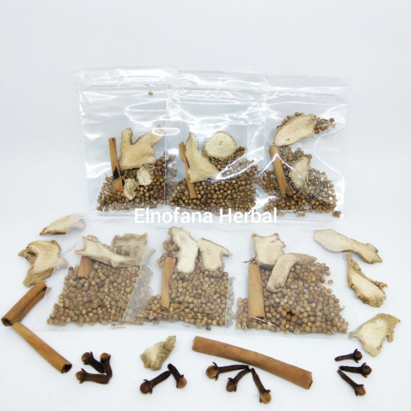 Note : - Eceran untuk 1x minum - Baik diminum rutin setiap hari - Cuci rempah, tuang ke dalam gelas 250 ml lalu seduh dengan air panas, tunggu 5 menit dan siap untuk diminum.