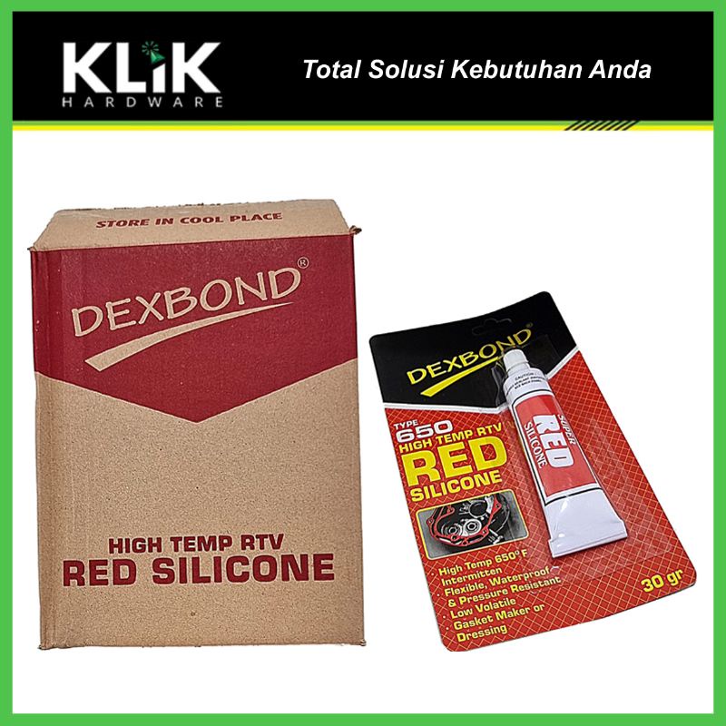 SILICONE RED : Lem DEXBOND RED SILICON Lem gasket mesin Nett Weight : 30 g DEXBOND RED SILICONE Gasket Maker untuk mesin, dibuat dari bahan berkualitas tinggi yang flexible, tahan kuat panas yang tinggi.