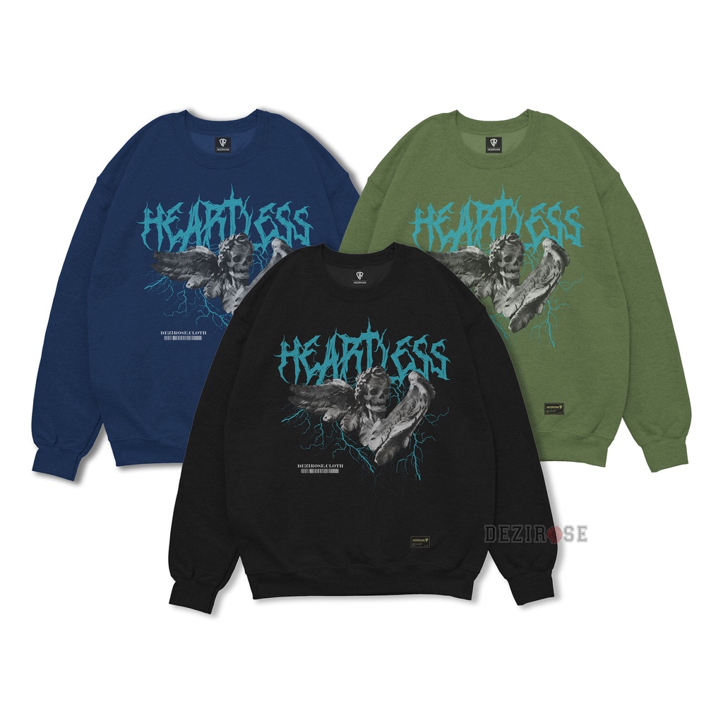 DEZIROSE Sweater Crewneck Pria Distro Heartless Fleece Tebal Premium Size M-XXL