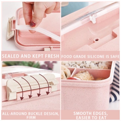 Detail [DGB] KOTAK MAKAN BEKAL BEKEL LUNCH BOX JERAMI SET SENDOK GARPU SUMPIT SERBAGUNA