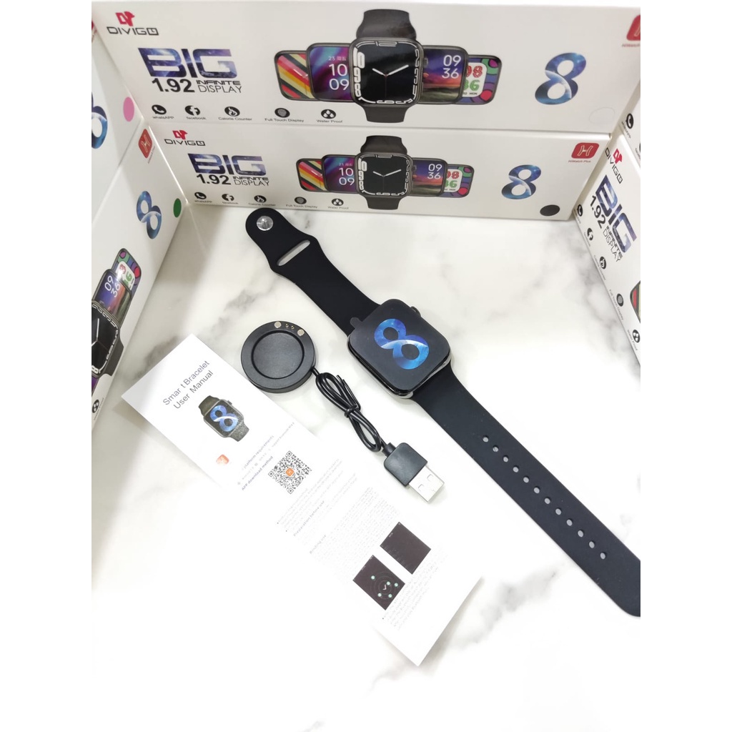 [DGS] COD Jam Tangan SmartWatch DIVIGO Series 8 100% Original BIG INFINITY DISPLAY 1.92" HIWATCH PLUS