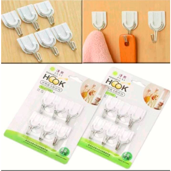 Hook 1 Set Isi 6 Gantungan Tempel Dinding Gantungan Hanger Gantungan
