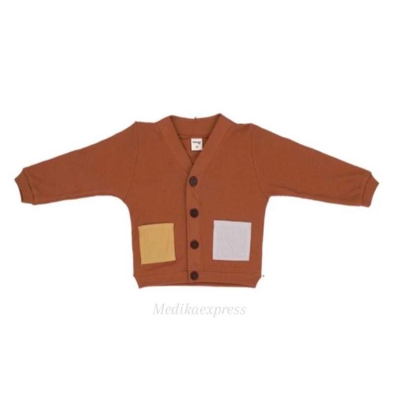 Detail Dialogue Two Tone Pocket Cardigan Waffle / Cardigan Anak / Jaket