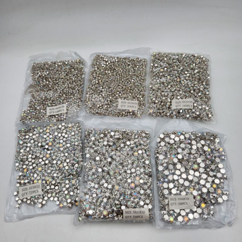Detail Diamond Cangkang / Permata Cangkang "3D" / ss cangkang / berlian butiran ss.25 dan ss.30