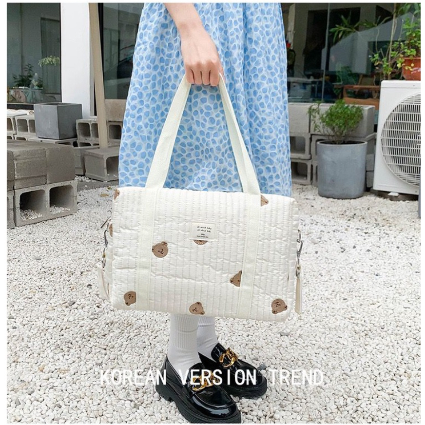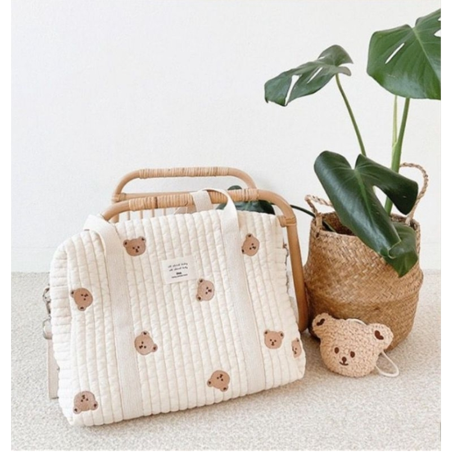 DIAPER BAG KOREAN LOOK / SHOULDERBAG MOTIF TEDDY BEAR LUCU / TAS PERLENGKAPAN BAYI / KADO LAHIRAN / NEWBORN GIFT IMPORT / TAS GANTUNG STROLER / PREMIUM COTTON STROLLER POUCH BAG / TAS HANDBAG WANITA KOREA STYLE/TAS DIAPER BAYI TOTEBAG BORDIR MEDIUM SIZE
