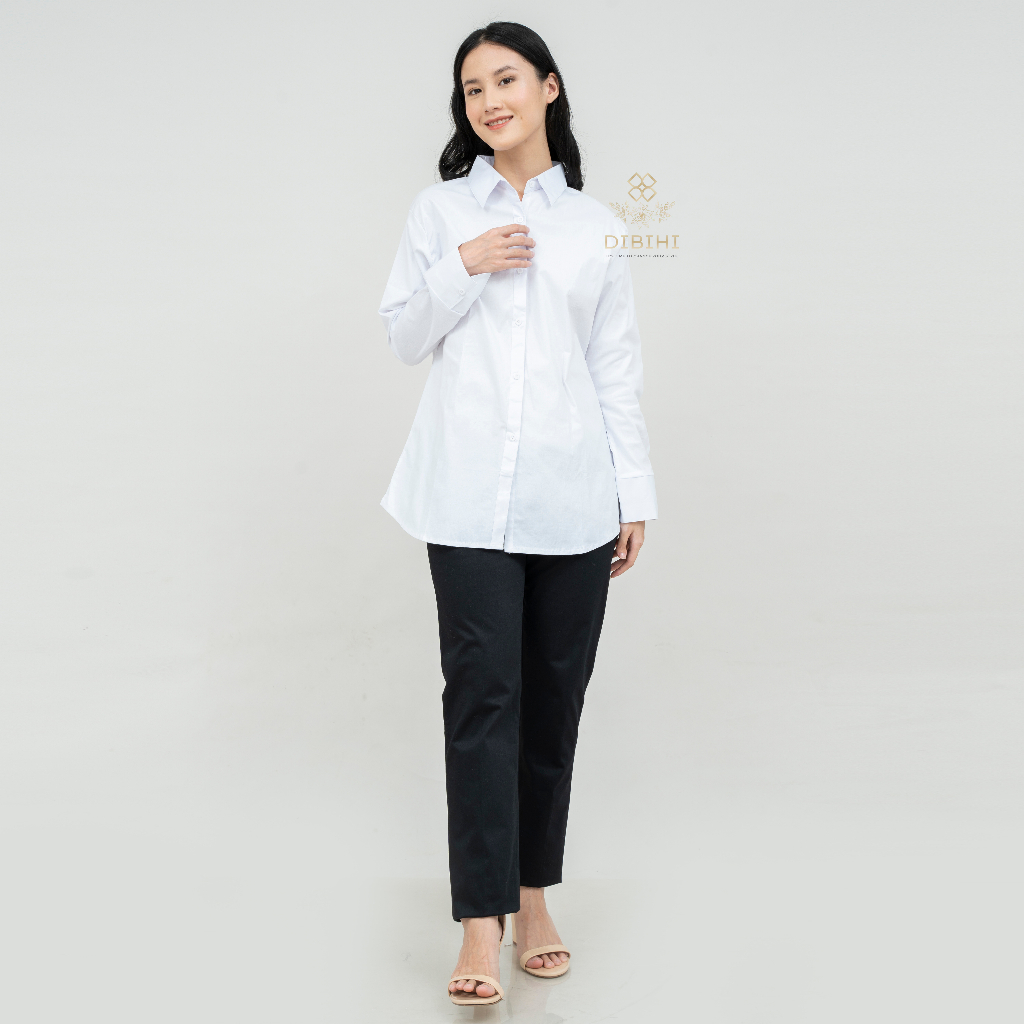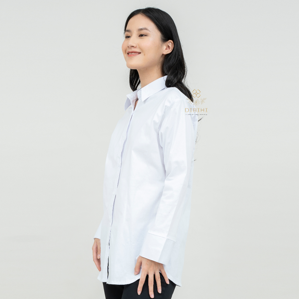 Detail Dibihi Shirt Kemeja Putih Polos Wanita Lengan Panjang Bahan Katun Stretch