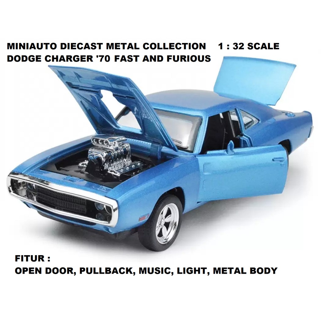Detail Diecast mobil Fast Furious Dodge Charger 1970 Miniauto Original 1:32 TOP MODEL METAL COLLECTION